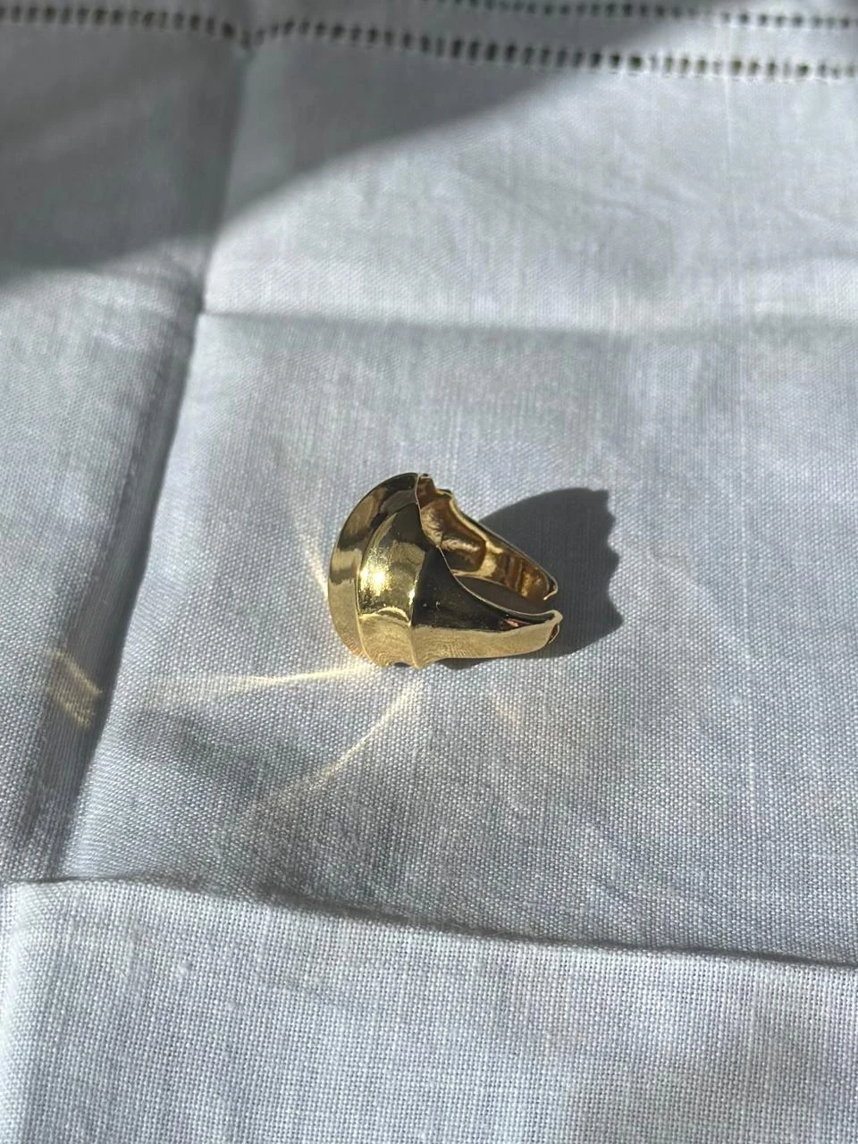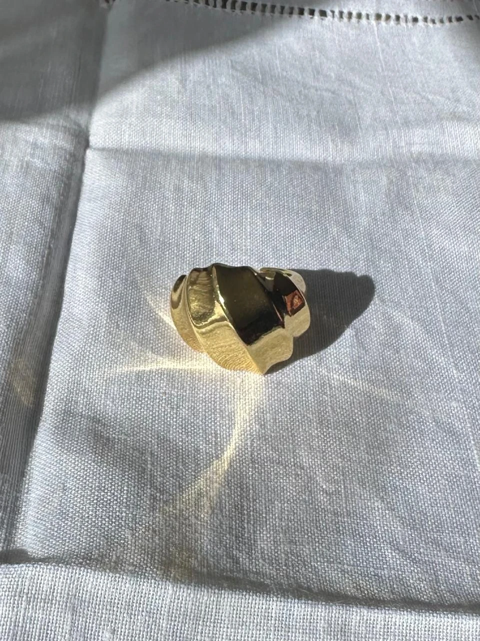Un anillo dorado de acero inoxidable con un diseño chunky y llamativo, ideal para quienes buscan un accesorio elegante y con carácter. Su acabado pulido y resistente garantiza durabilidad y brillo, haciéndolo perfecto para complementar cualquier outfit con un toque de glamour y confianza.
